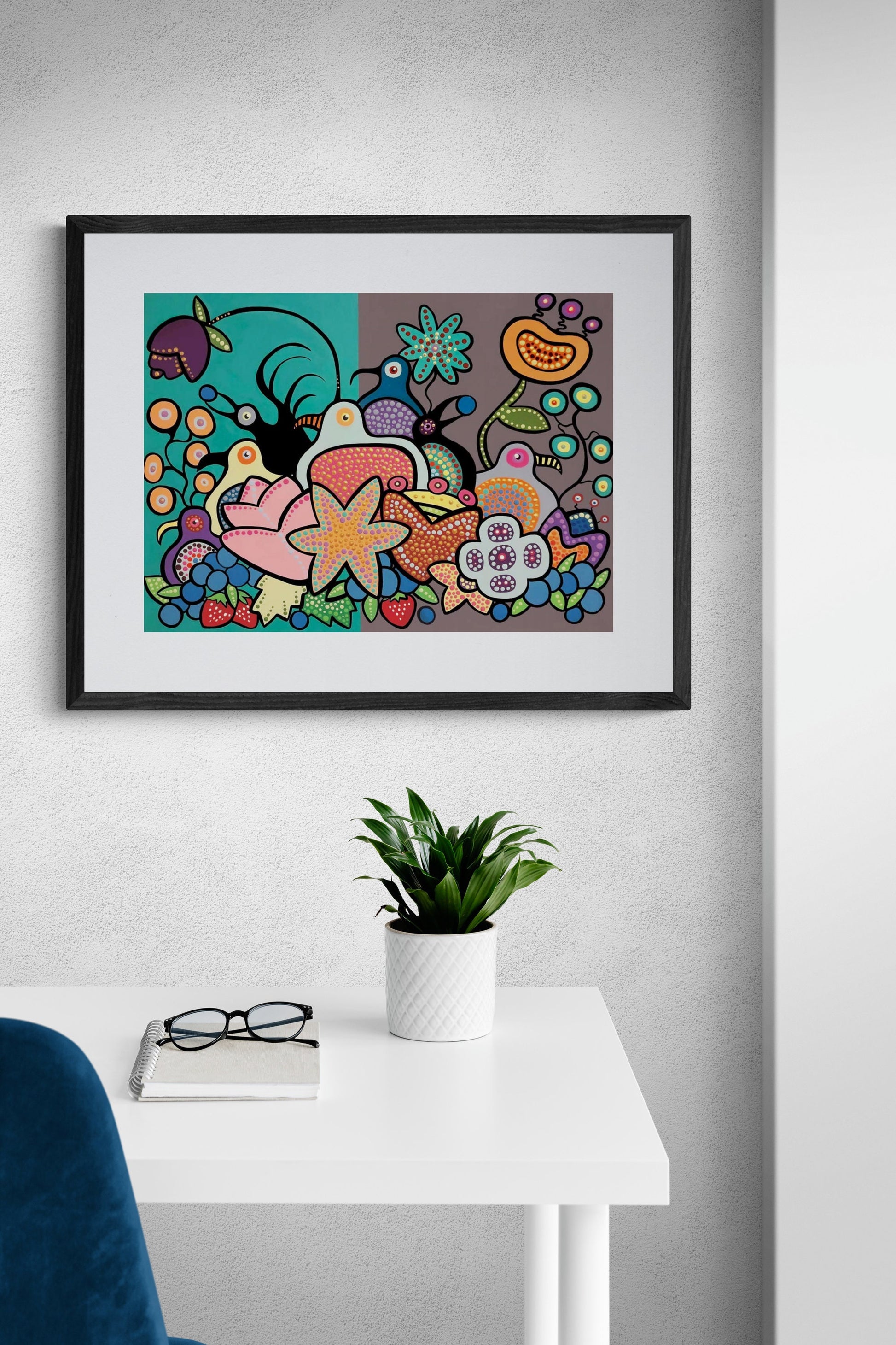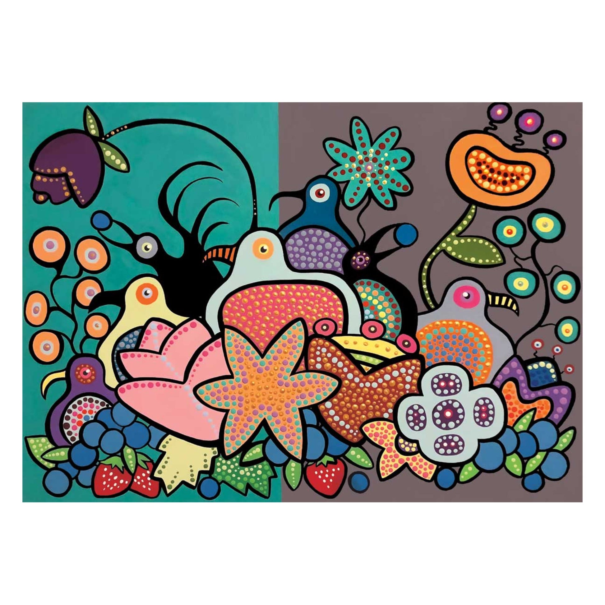 The Berry Bird Harvest II by Donna Langhorne Indigenous Art Print, First Nations, Anishinaabe Nation, Native Americans Decor, Framed Art