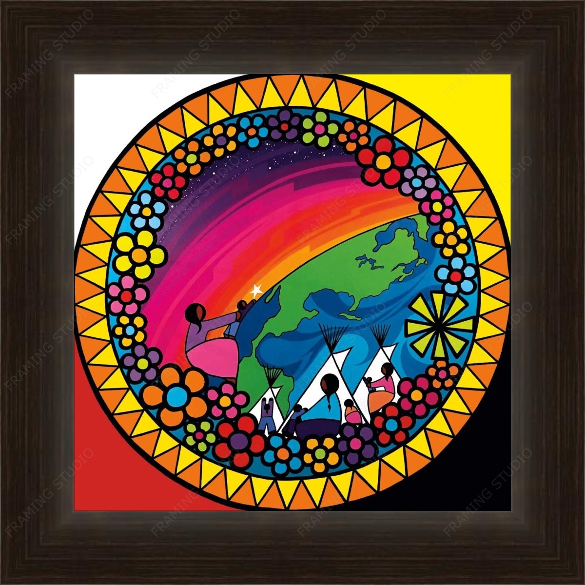Framed Print Poly Frame (no mat) - Outside Finished Size 16" X 16" Mounted on masonite with protective coating and framed in a dark walnut, textured, polystyrene frame.