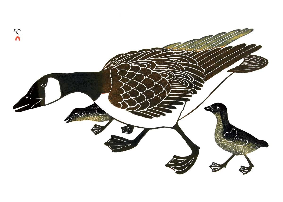 The First Walk, 1985 by Kananginak Pootoogook, Indigenous Art Card, Inuit Framed Art Card