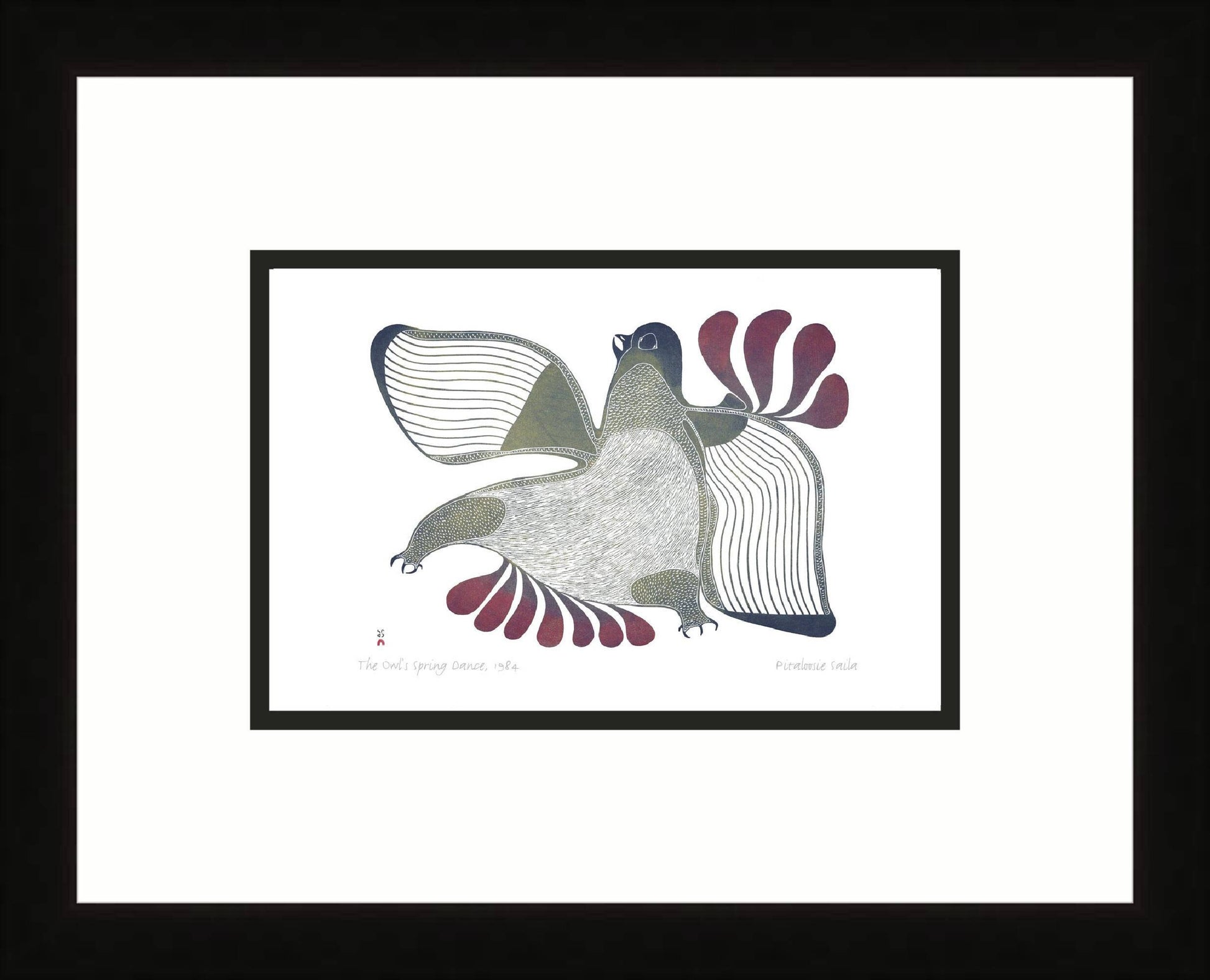 The Owl’s Spring Dance, 1984 by Pitaloosie Saila, Inuit Art Card, Framed Art Card