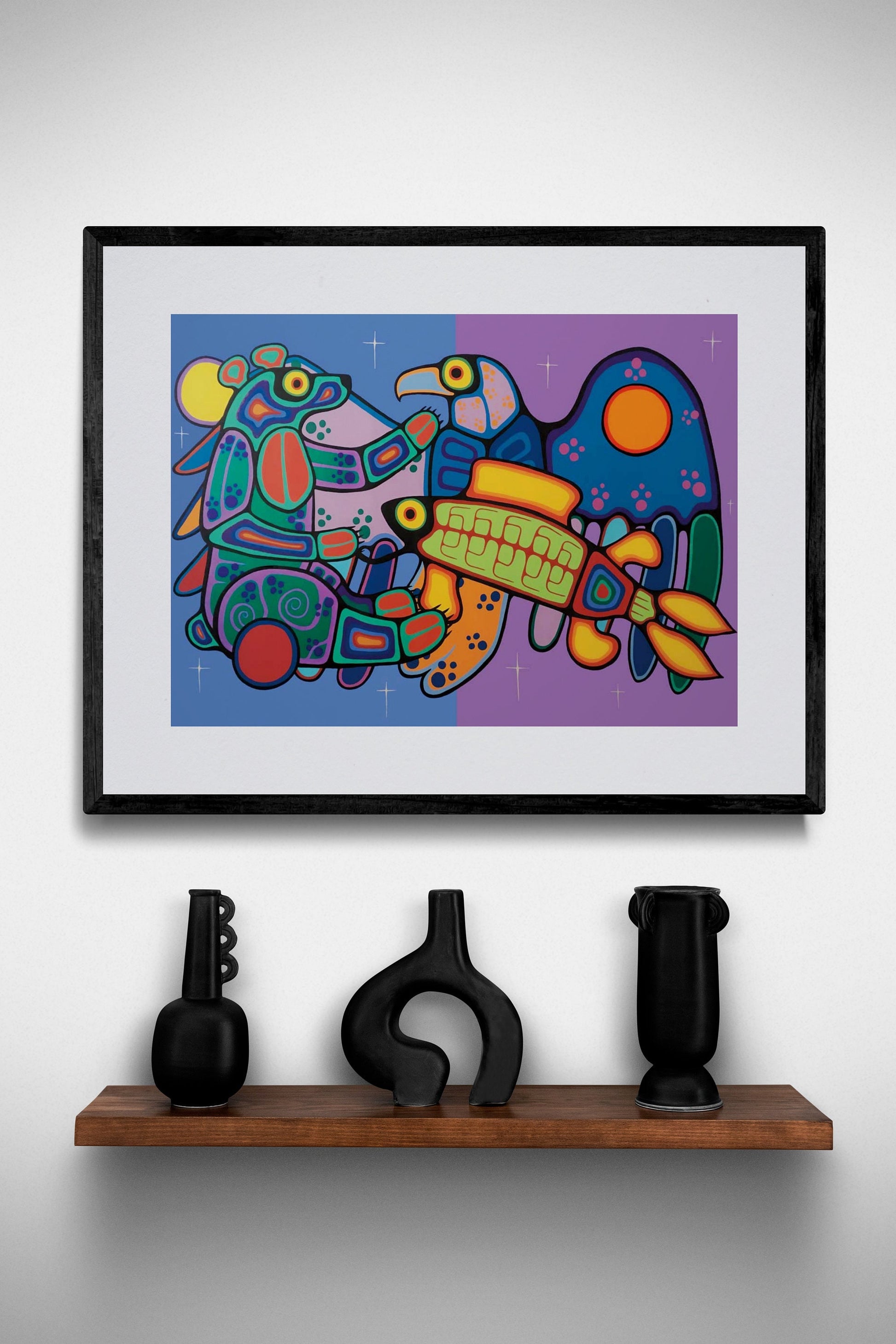 Three Clans Meet Again by Jim Oskineegish Indigenous Art Print, First Nations, Ahnisnabae Culture, Native American Indian Decor