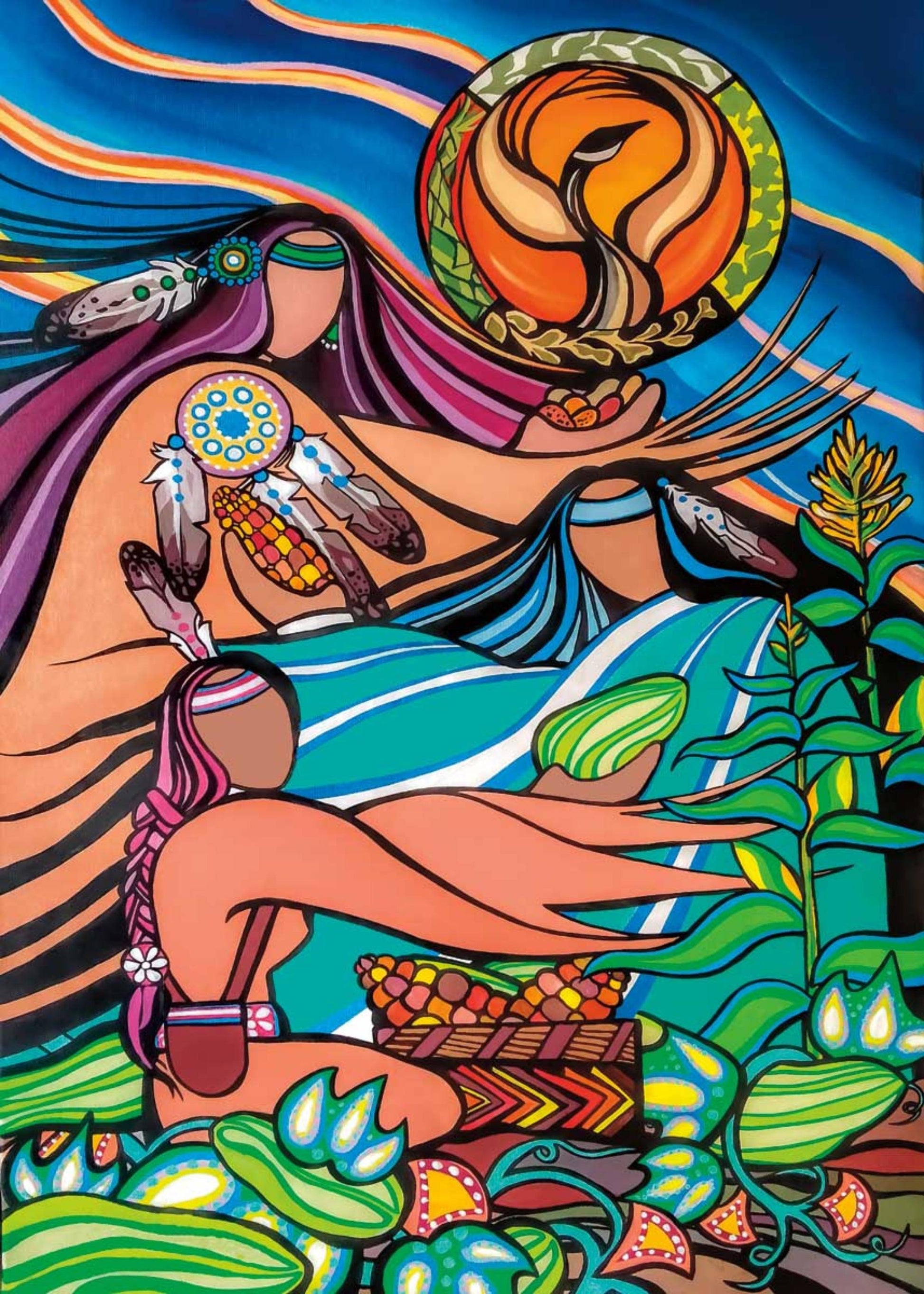 Three Sisters by Pam Cailloux, Indigenous Art Card, Framed Art Card, Métis Artist