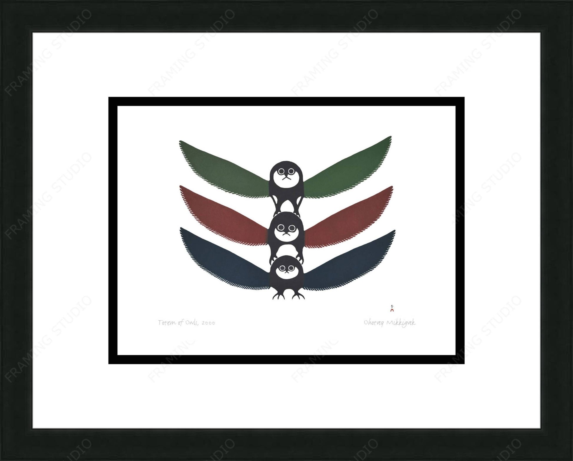 Totem Of Owls, 2000 by Ohotaq Mikkigak, Indigenous Art Card, Inuit Framed Art Card