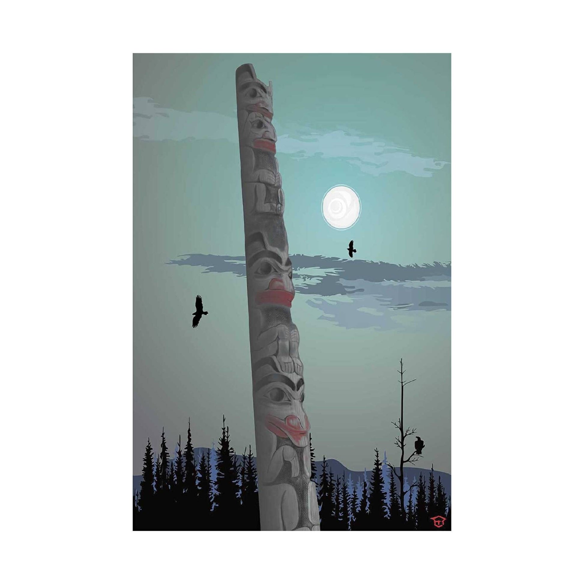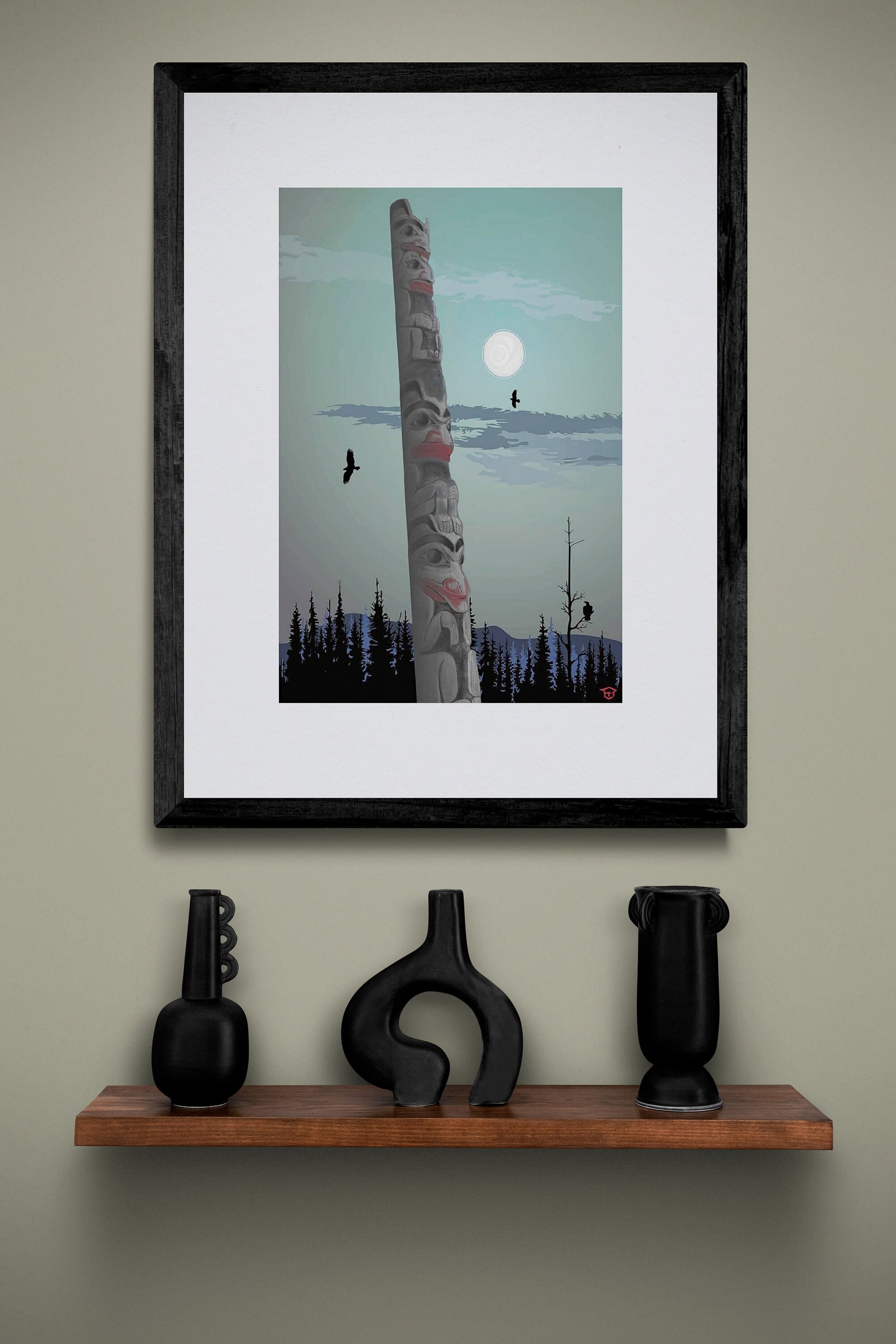 Totem Pole By Mark Preston, Indigenous Art Print, First Nations, Native Americans, Tlingit, Yukon Territory, Framed Art