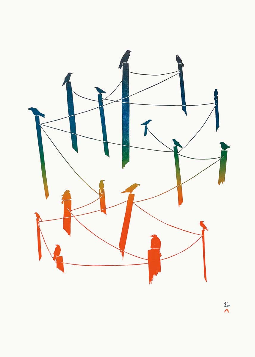 Town Ravens by Arnaqu Ashevak, Indigenous Art Card, Inuit Framed Art Card