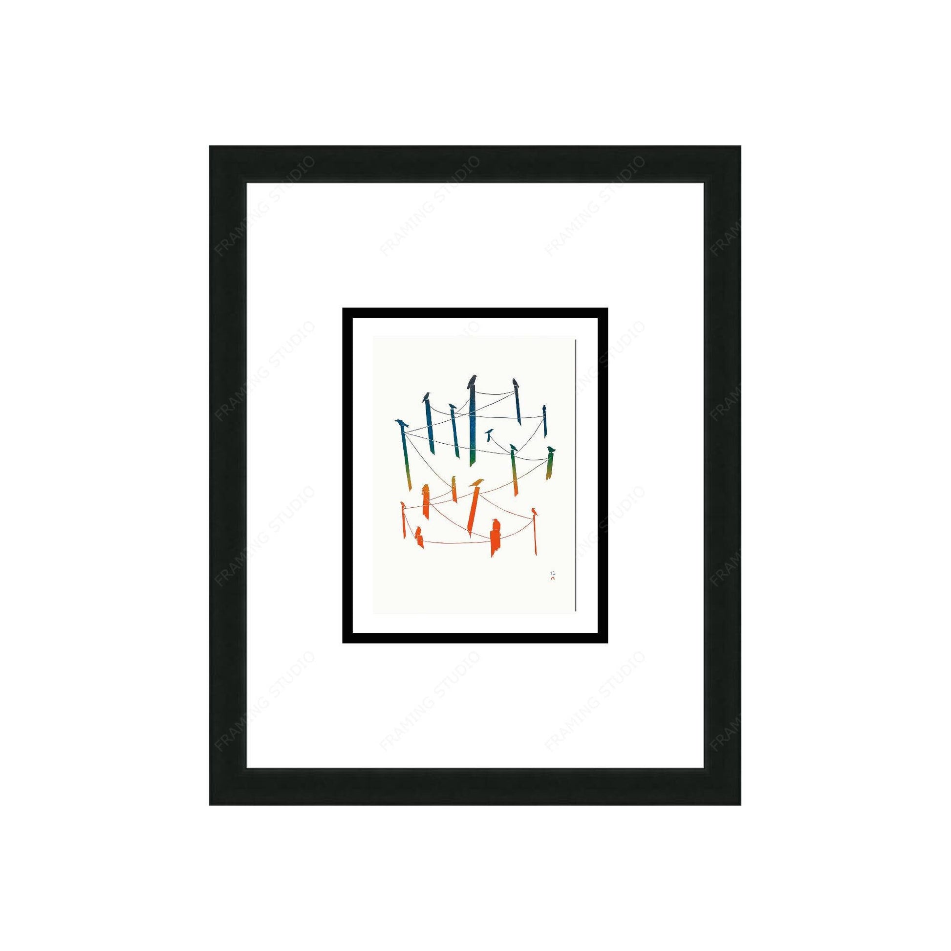 Framed Outside Finished Size: 13 X 16, Double Mat, 1.25” Black Wood Frame, Finished Backing with Wire Hanger and Artist's bio on the back.
