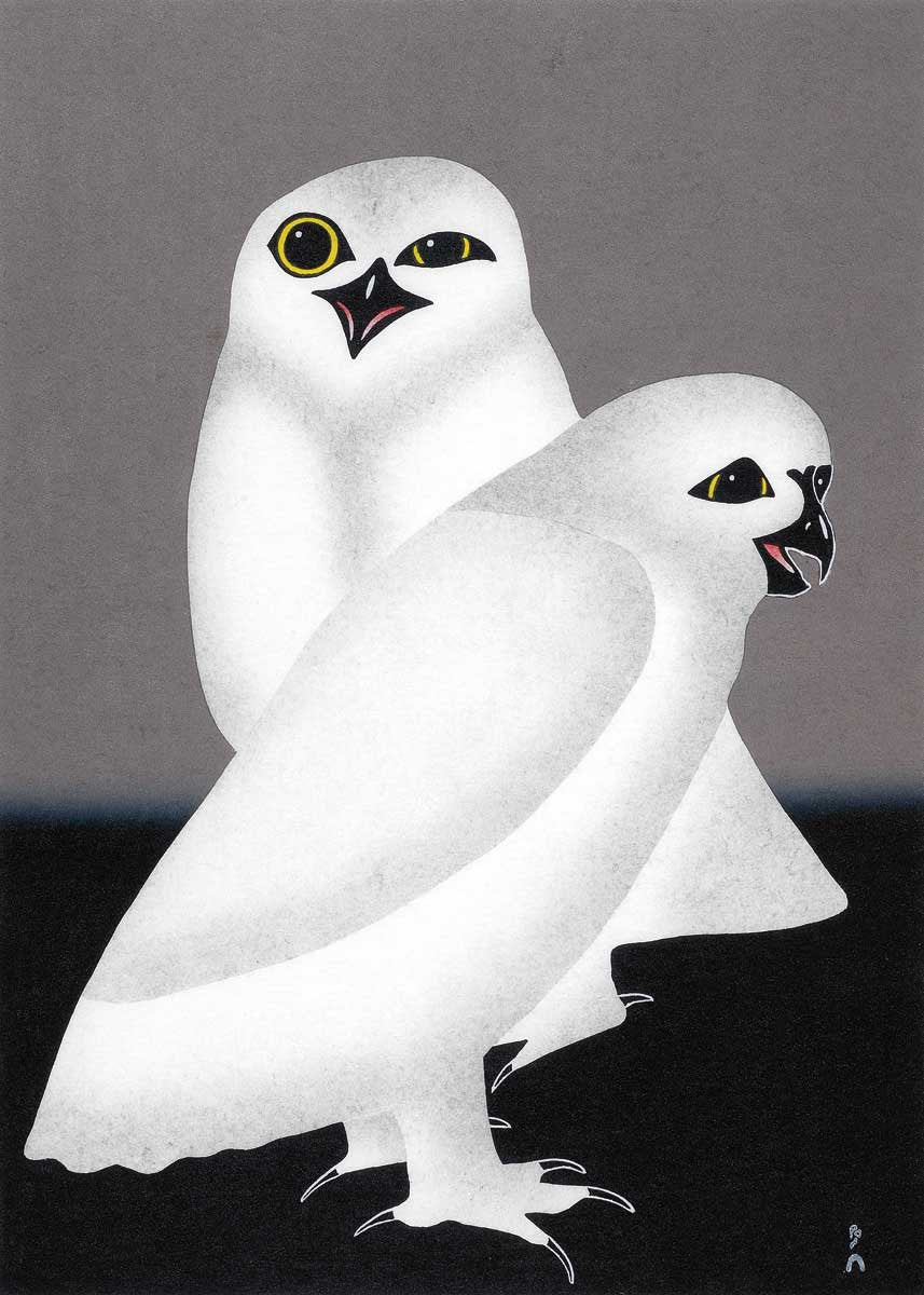 Unnuarsiut Uppiik (Night Owls) by Kananginak Pootoogook, Indigenous Art Card, Inuit Framed Art Card
