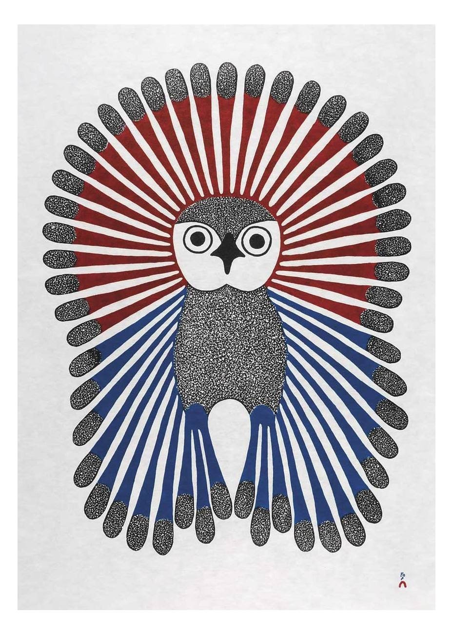 Vibrant Young Owl, 2001 by Kenojuak Ashevak, Indigenous Inuit Art Card, Aboriginal Decor, Framed Art Card