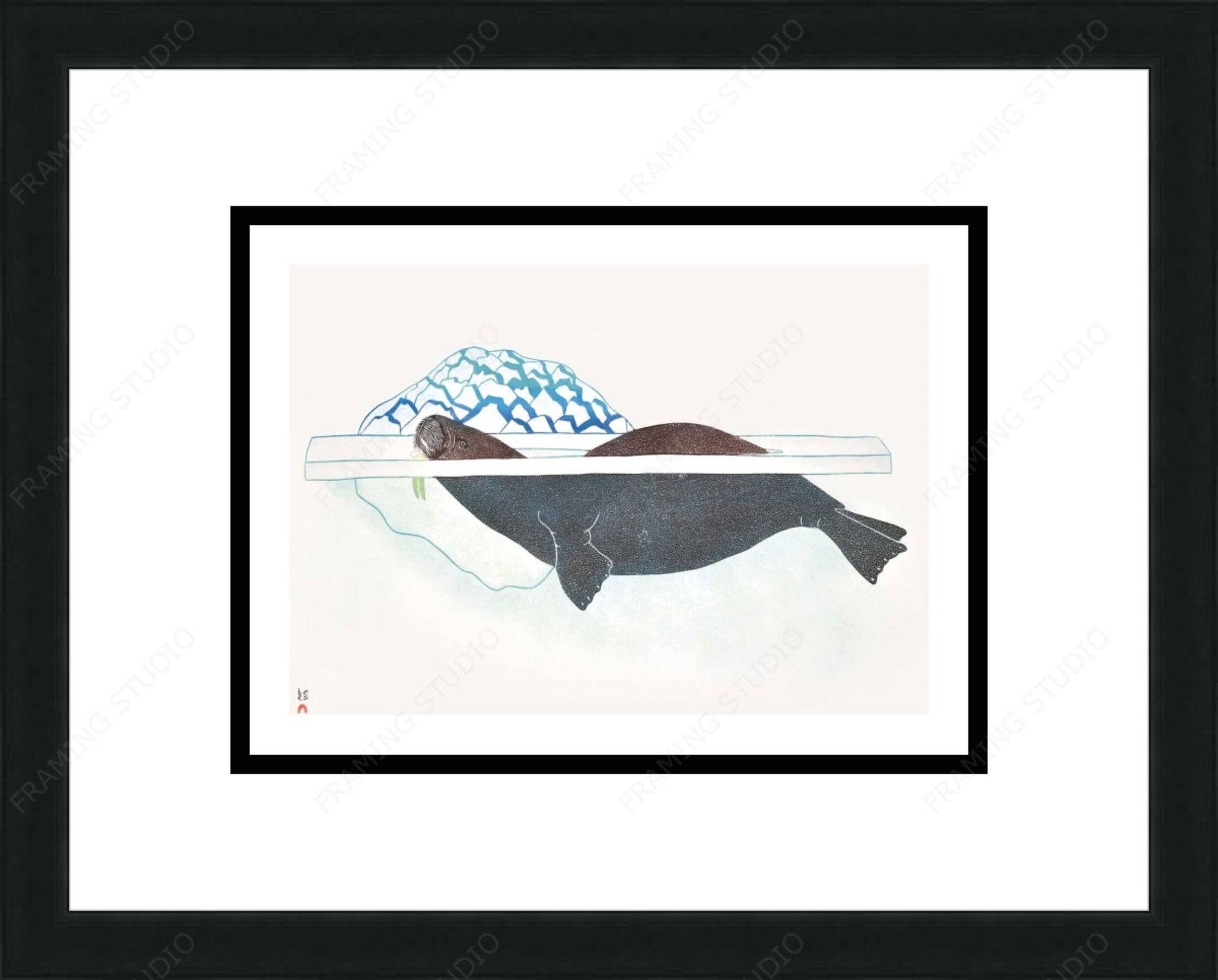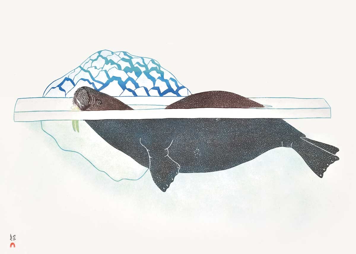 Walrus In Pressure Ice, 1989 by Kananginak Pootoogook, Indigenous Art Card, Inuit Framed Art Card