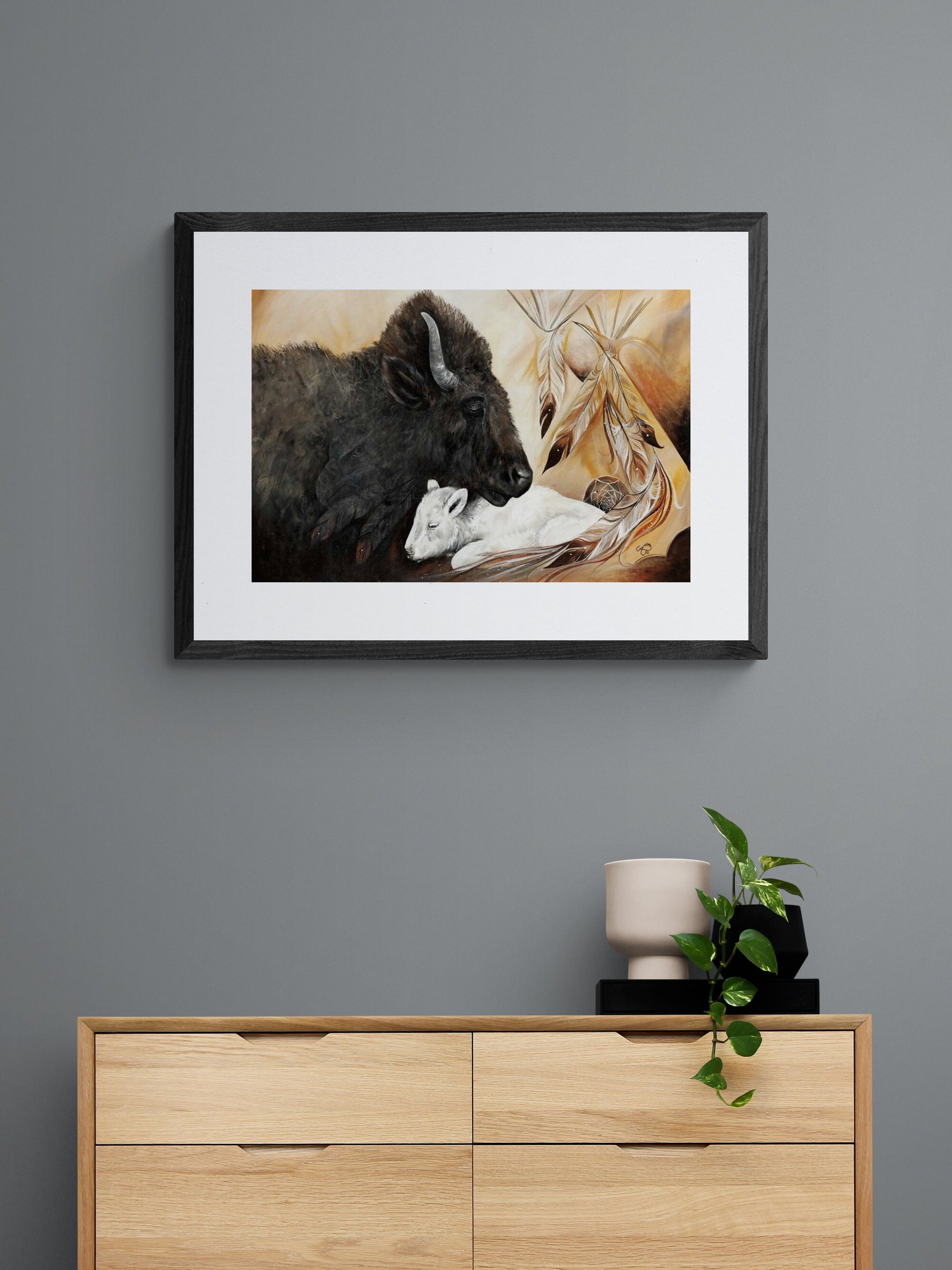 White Buffalo By Carla Joseph, Indigenous Art Print, First Nations, Native Americans, Cree, Métis, Framed Art