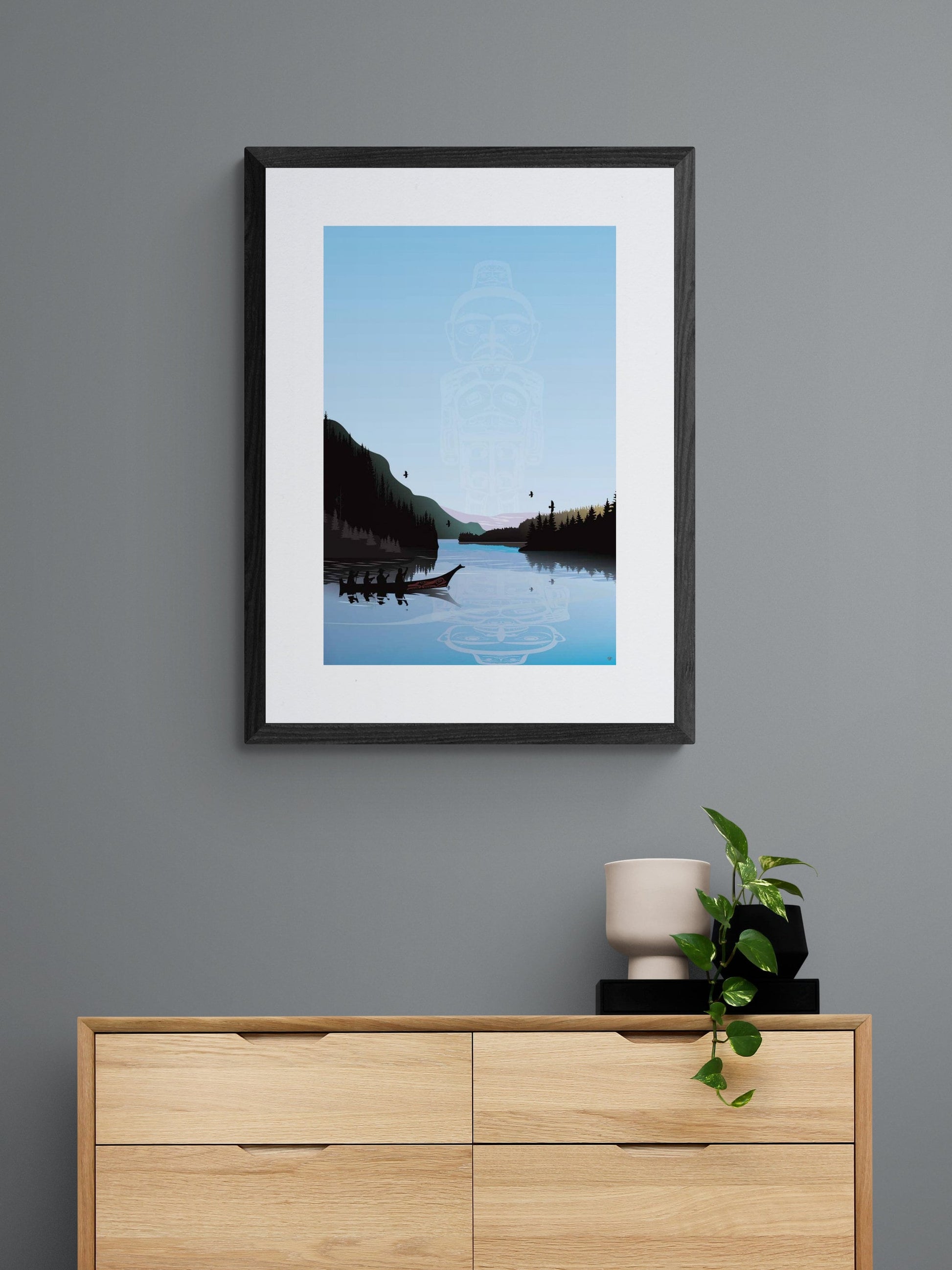 Winter Canoe Warrior Spirit By Mark Preston, Indigenous Art Print, First Nations, Native Americans, Tlingit, Yukon Territory, Framed Art