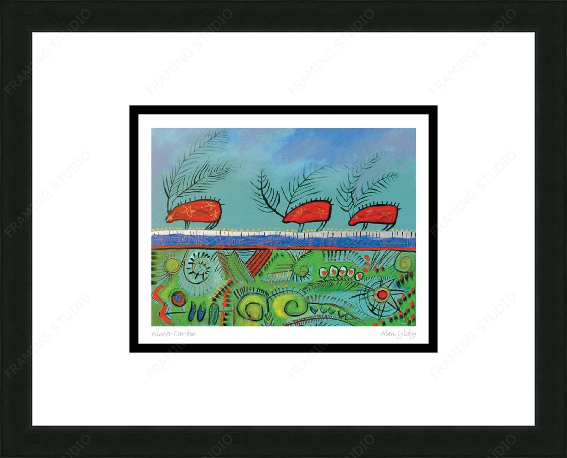 Winter Caribou by Alan Syliboy, Indigenous Art Card, Framed Art Card, Mi’kmaq Artist