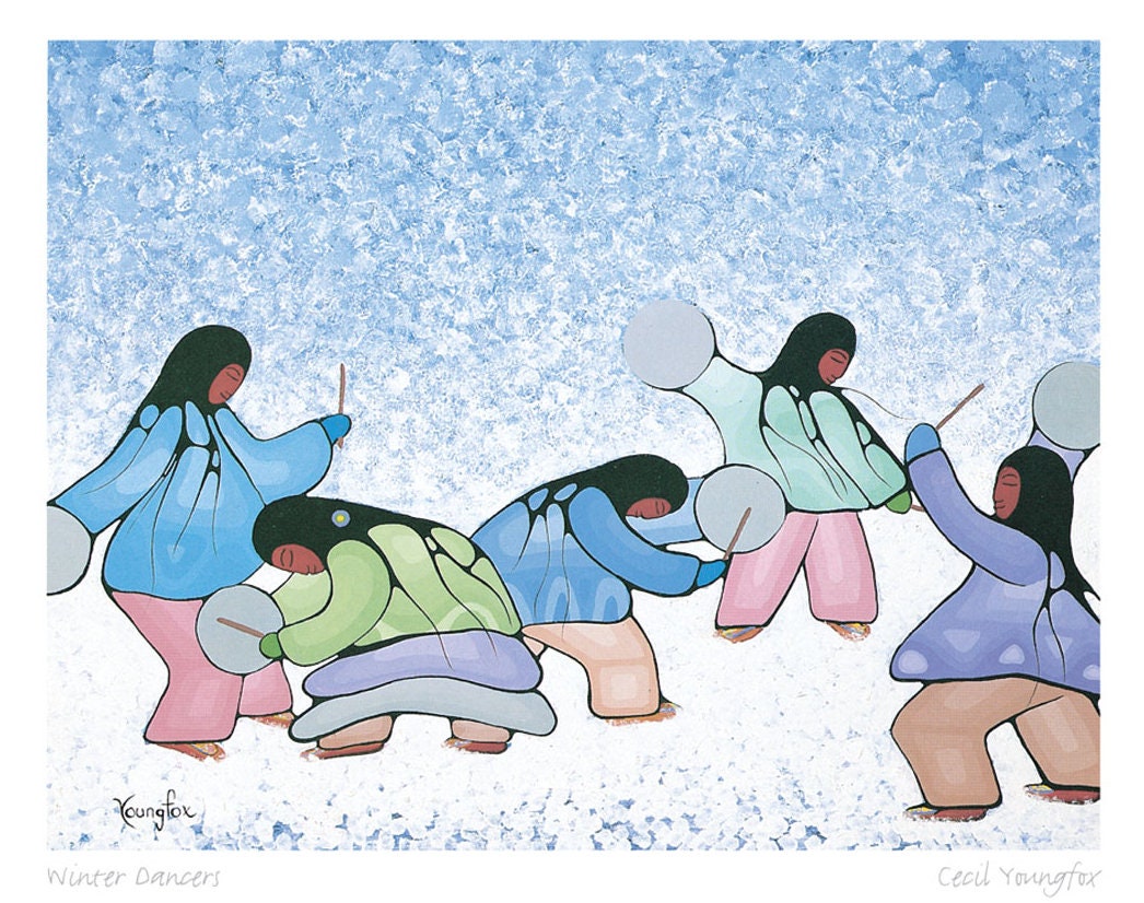 Winter Dancers By Cecil Youngfox Framed Artcard, Indigenous Art