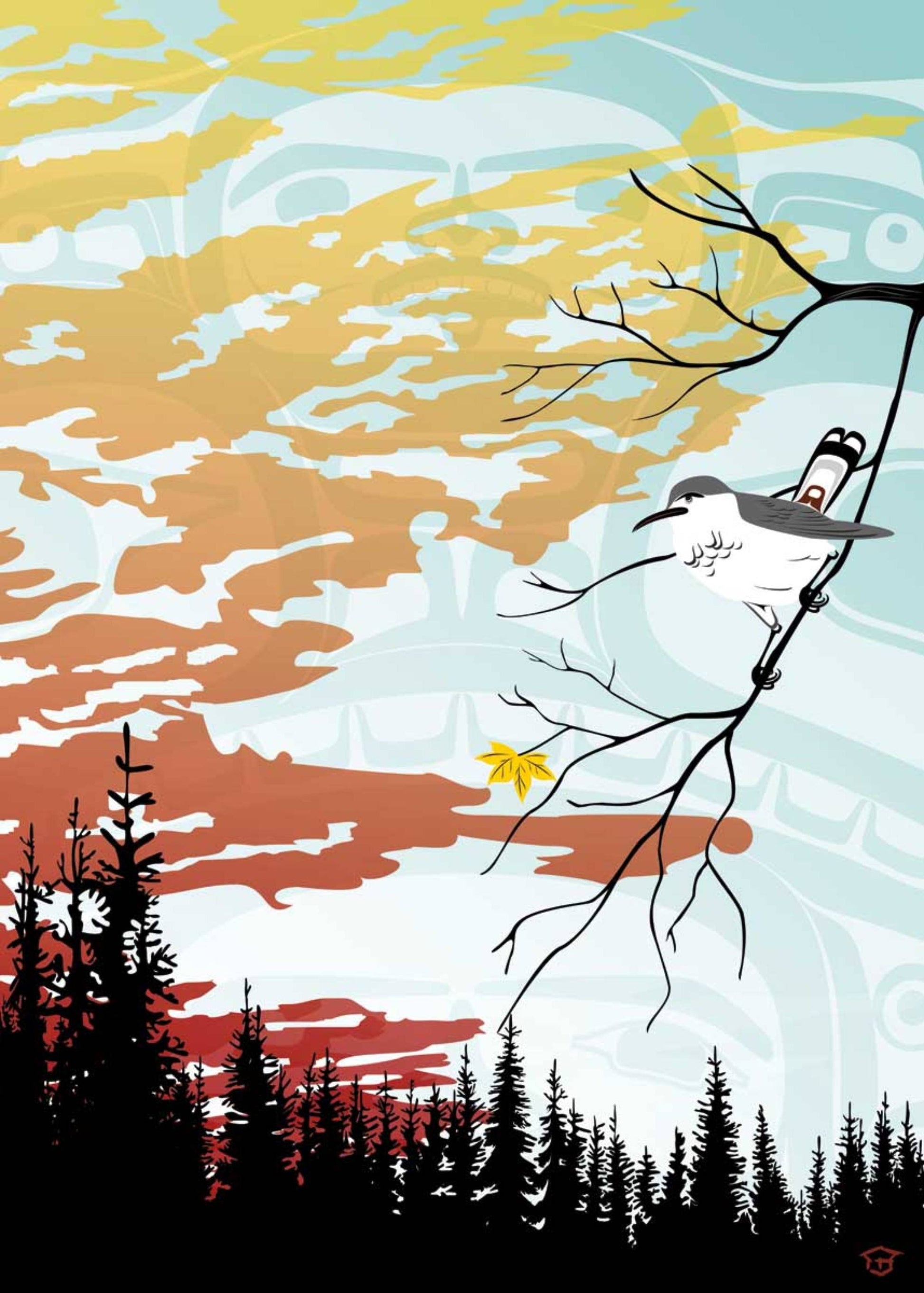 Winter Is Coming Bird By Mark Preston, Indigenous Art Print, First Nations, Native Americans, Tlingit, Yukon Territory, Framed Art