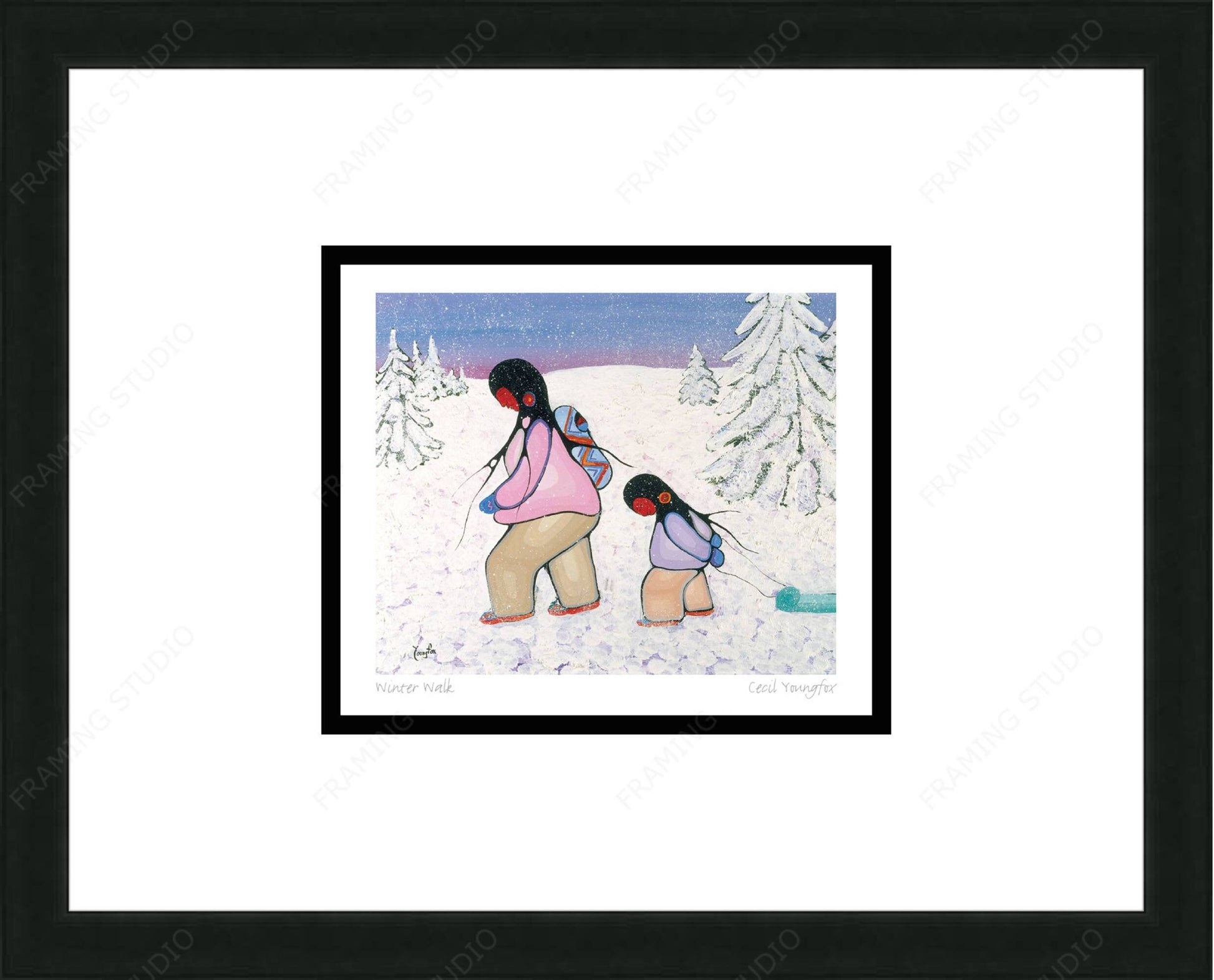 Winter Walk By Cecil Youngfox Framed Artcard, Indigenous Art