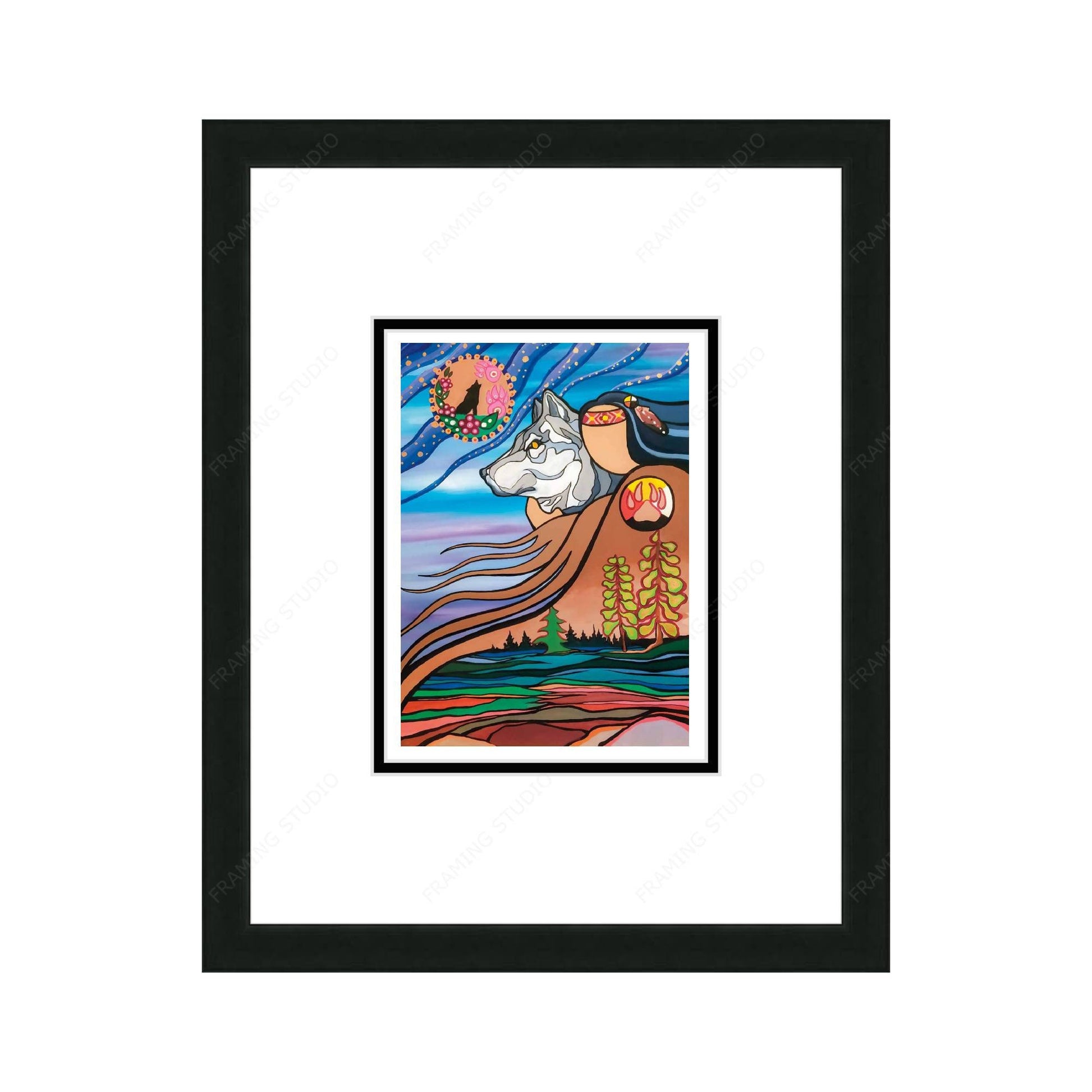 Wolf Medicine by Pam Cailloux, Indigenous Art Card, Framed Art Card, Métis Artist