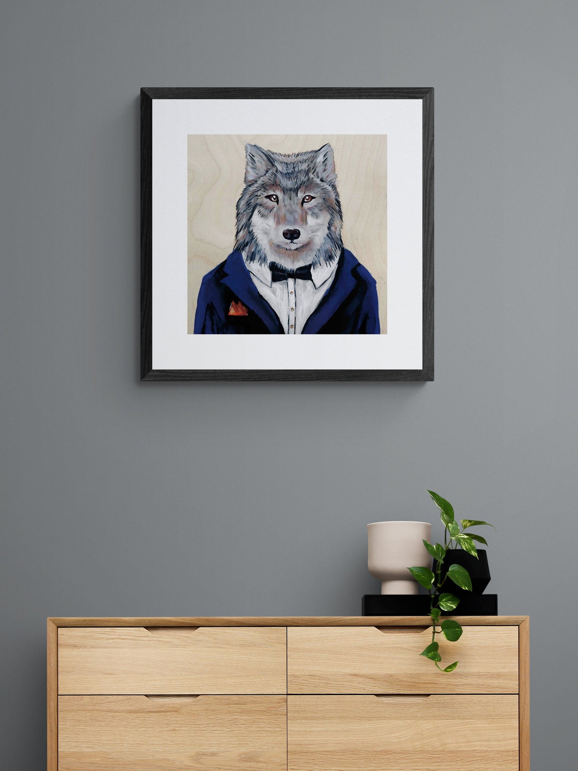 Wolf of Bay Street By Wynne Parkin, Canadian Artist, Canadiana Art Print, Framed Art