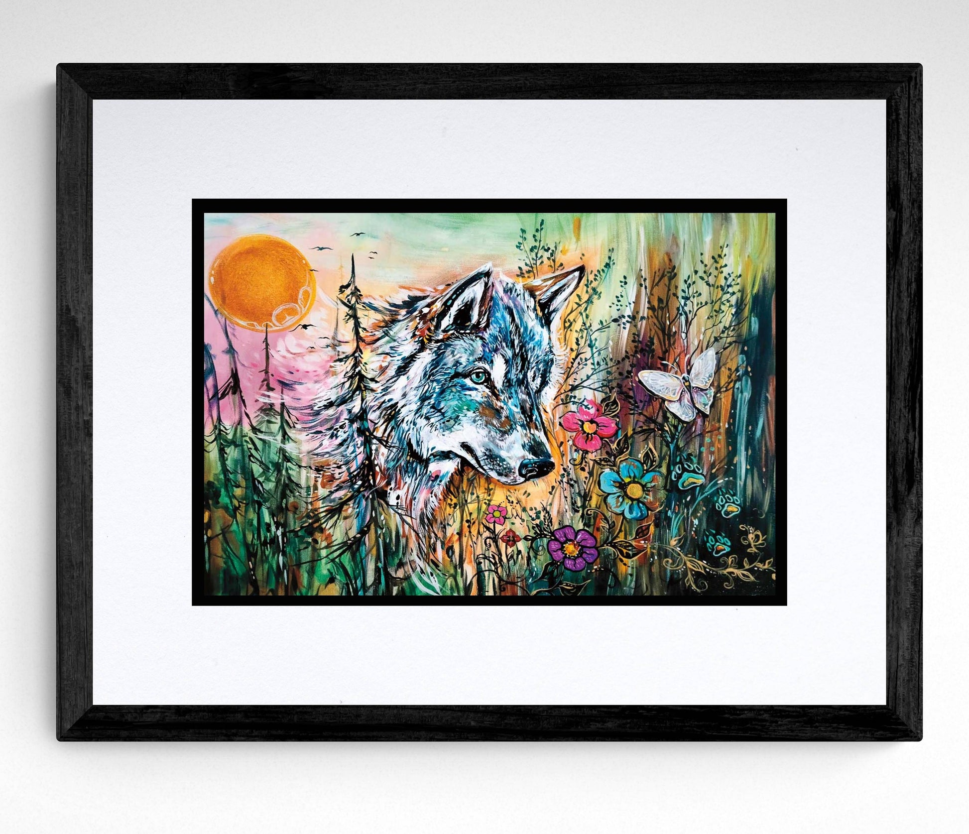 Wolf Path By Carla Joseph, Indigenous Art Print, First Nations, Native Americans, Cree, Métis, Framed Art